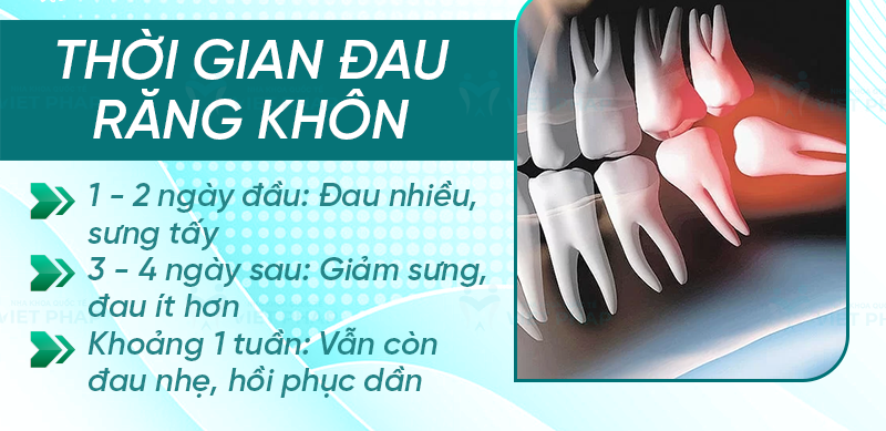 Nhổ răng khôn đau trong 3-4 ngày là hết đau hoàn toàn, có người cơ địa tốt thì chỉ sau 1 – 2 ngày là hết đau, có thể ăn uống sinh hoạt bình thường.