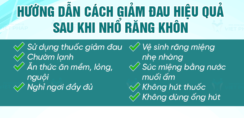 Nhổ răng khôn bị đau nhức, khó chịu là tình trạng khó tránh khỏi. Tuy nhiên, khách hàng có thể áp dụng một số biện pháp sau để giảm đau hiệu quả: